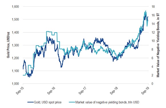 The first dimension supporting gold is just that low rates make gold look attractive. High interest rate environments tend to be tough for gold as gold does not pay any yield, but against negative interest rates, gold looks much more attractive.