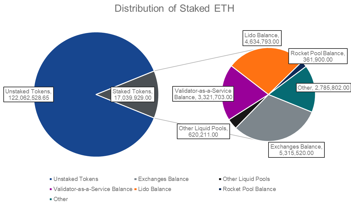 Around the time of the update, we expect the market will be more volatile than usual, as well as a minor disturbance in the network during the hard fork. We also believe that this will positively affect the sentiment towards Ethereum, increasing the staking ratio, therefore decreasing the liquid supply and selling pressure over time.