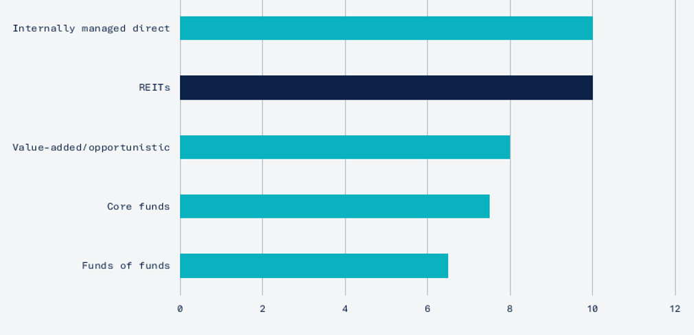5 CEM Benchmarking 2024, op. cit. REITs averaged 9.74% net annual return vs. 7.66% for private real estate. Returns adjusted for reporting lags.